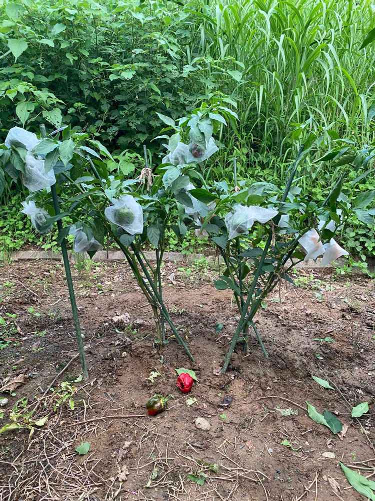 ネットで調べたら防虫ネットを設置するとあったけれど、ここまで苗が大きいと80超えの祖母と私には無理‼️そりゃ、前に住んでるおじさんに頼めばすぐ作ってくれるけど、初めての自分のパプリカだから自分でなんとかしたい🧐🧐