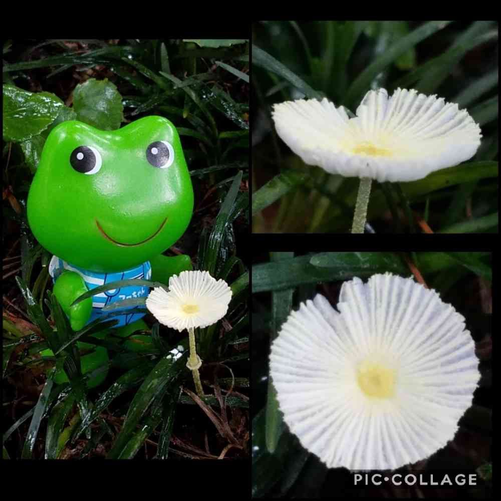 キノコなんですよ~昨日、発見したのです。でも、発見してから僅かな命でした。少ししたら萎れてしまって。花笠みたいな感じというのはわかります。傘がうっすら透明な感じがしました。名前も可愛いですよね♡♥