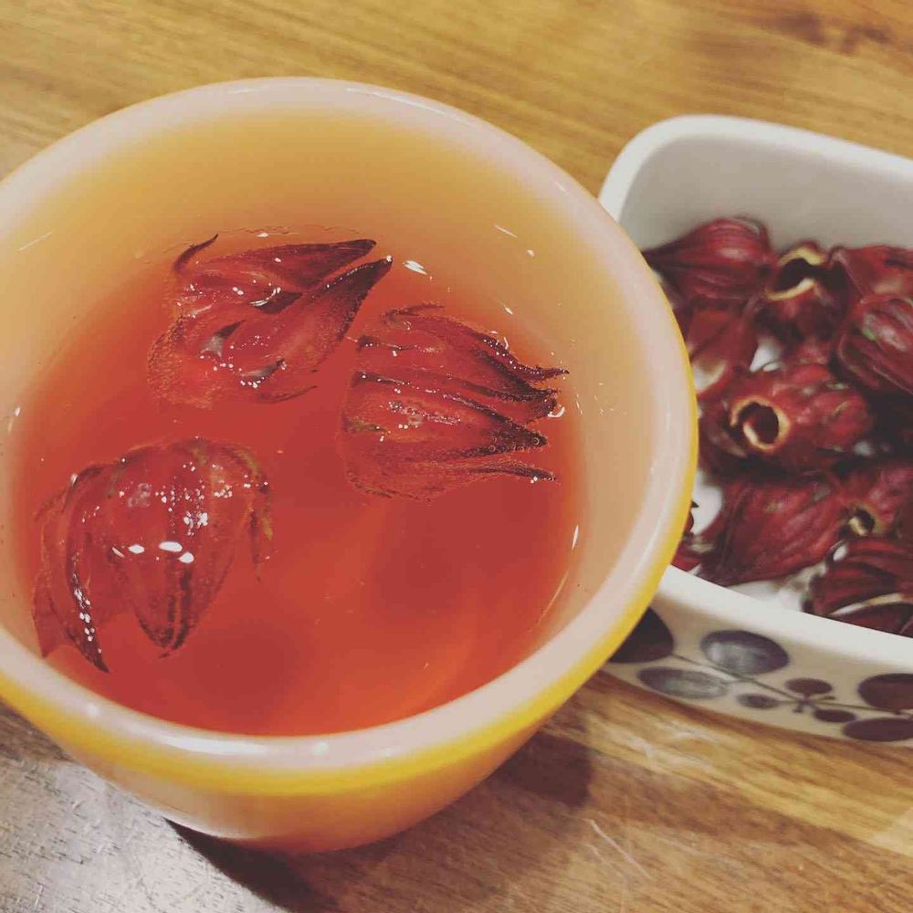 畑でとれたローゼルでハイビスカスティーを作りました♡優しい酸味とほのかな甘みがたまりません(^^)♪
