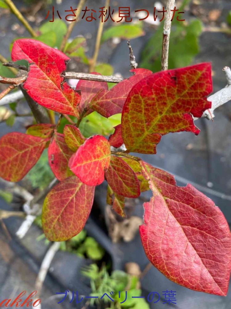 ブルーベリーの葉が、赤く紅葉しています🍁