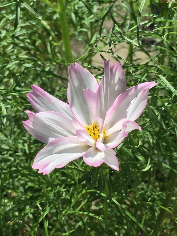 薄いピンクのグラデーションの綺麗なコスモスが一輪だけ咲いていました