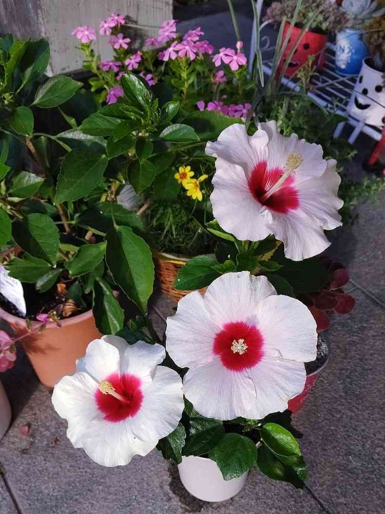 台風にも負けず、ハイビスカス🌺、可愛い色合いで元気に咲いてますね💓