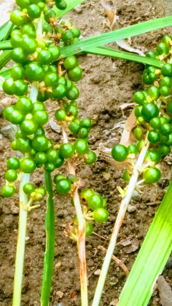 雑草に被われた裏庭の草取りをしていて見付けた💚ヤブラン💚