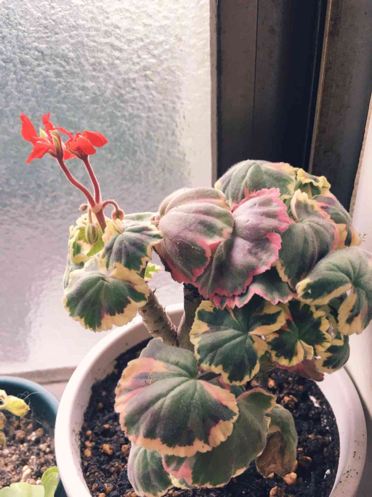 古典ゼラニウムは葉色が素敵で特に好きなのですが、一般的なゼラより弱くこの猛暑で大切にしていた子達が逝ってしまいました。千曲の輝も逝ってしまい、写真の子は最近ウチに来ました。