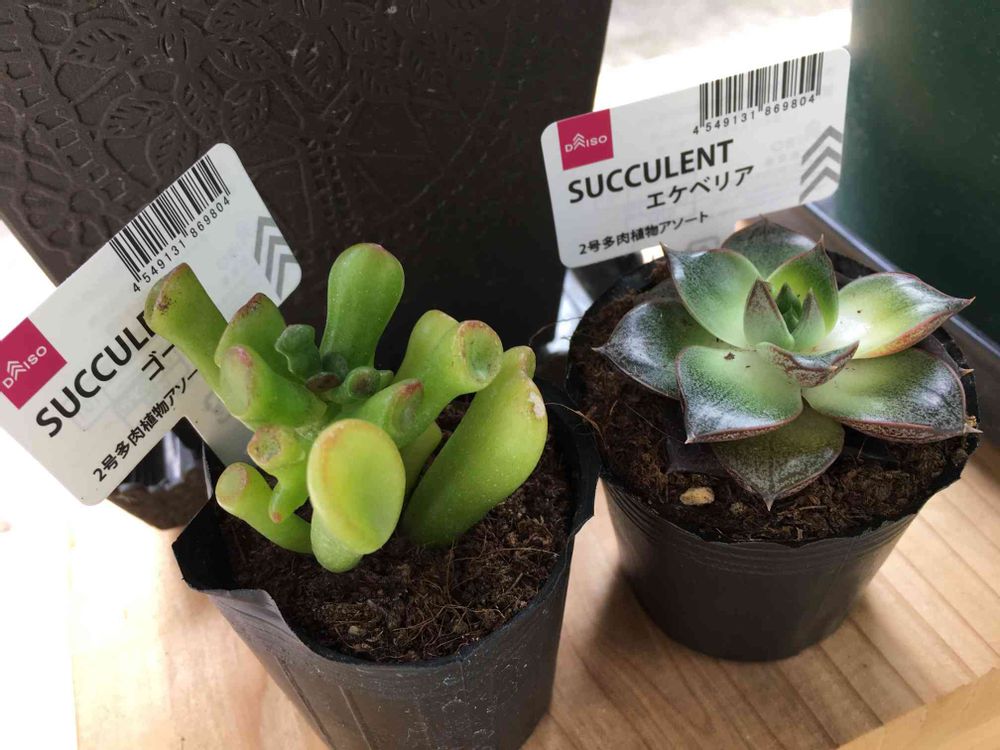 ダイソー多肉ちゃん、久しぶりに購入しちゃいました(^^)ゴーラムさん初めて!エケベリア多分、大和錦?エケベリアは梅雨明けに1つダメにしてからショックで暫くやめておこうと思っていたけれど、可愛くて💓