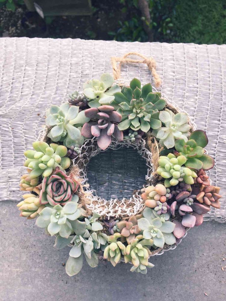 初リース💕リースって多肉たくさん必要ですね〜。小さいサイズですが、足りない足りない😅あとはモリモリしてくれるのを待ちましょう。