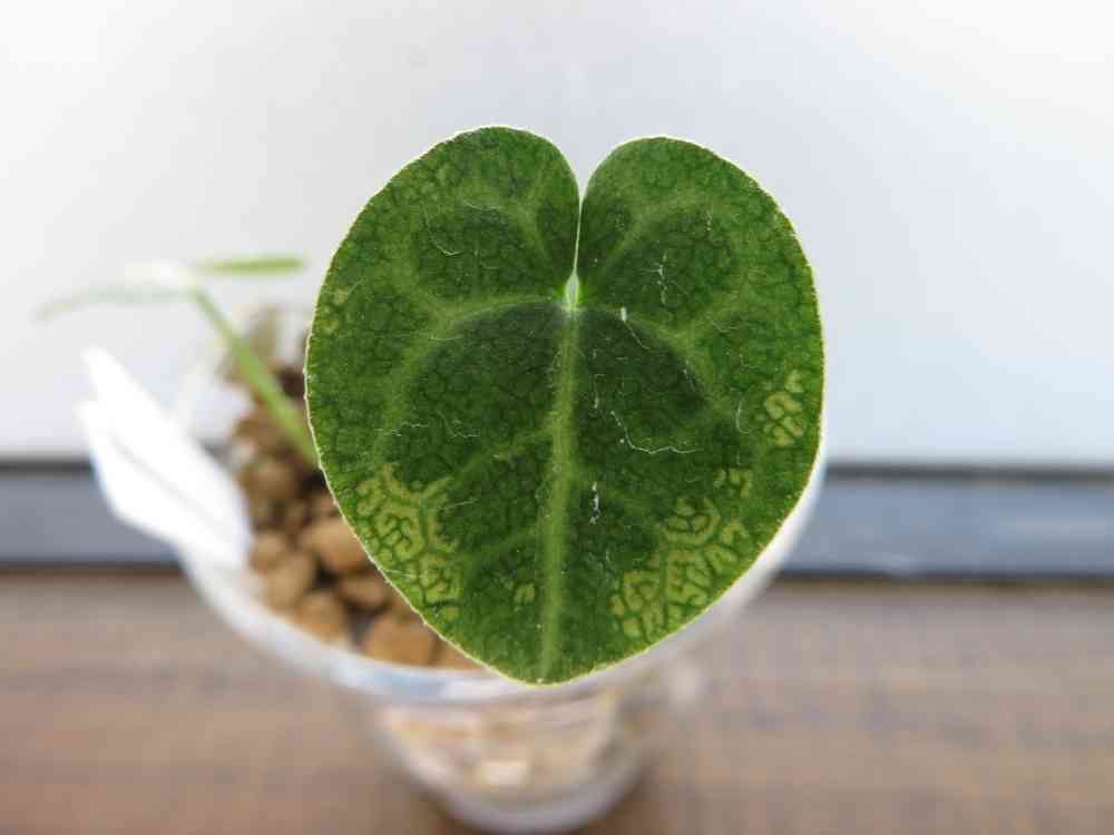 細辛の幼葉に出現したラーメンマーク(ラーメンどんぶりに描いてあるグルグルマーク)
