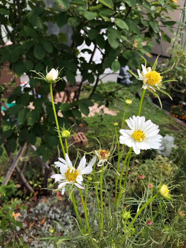 白いコスモス🤍昨年のこぼれ種から咲きました😊🎶