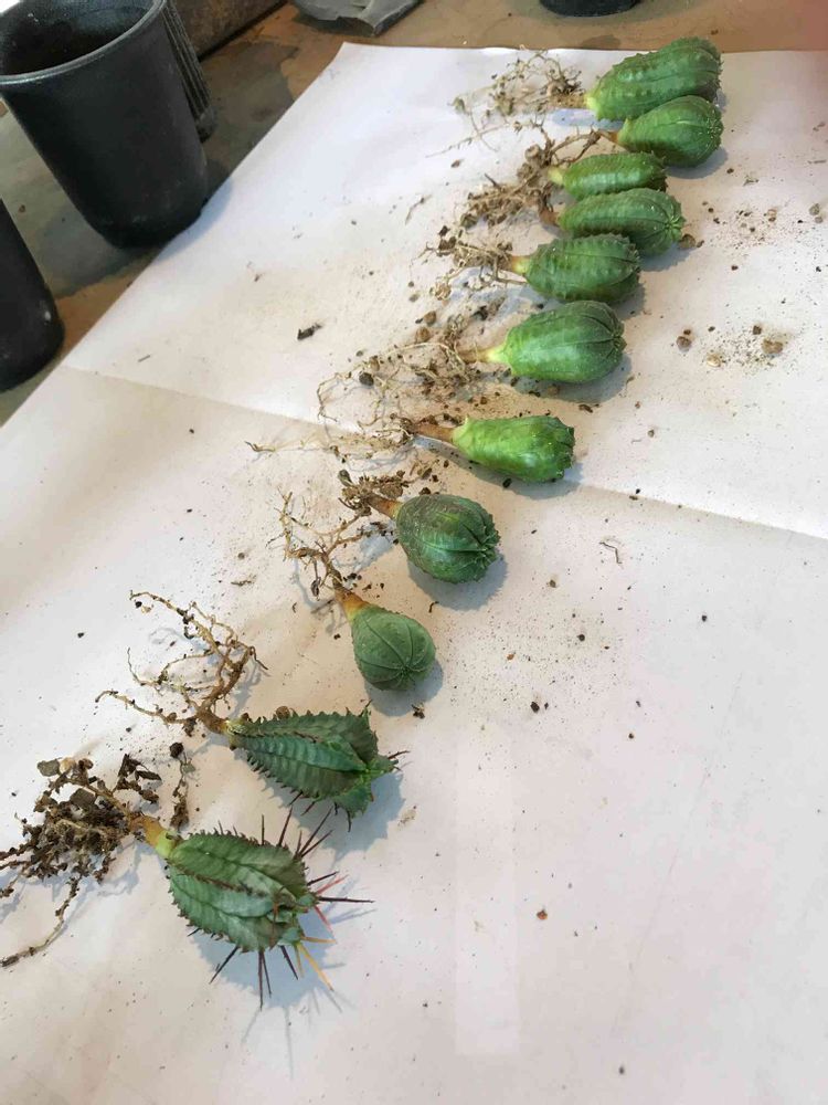 オベサとホリダを植え替えました。皆同じ日に種まきしましたが大きさも顔もバラバラです。ここには写っていませんが、これぞオベサって感じのまん丸なやつもいます。obesaってポルトガル語で肥満らしいですよ。