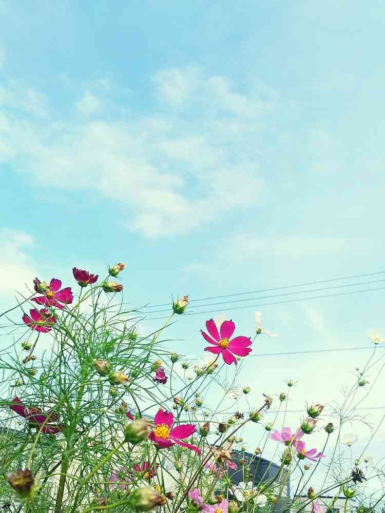 青空に、揺れる コスモス 🌸 、、、