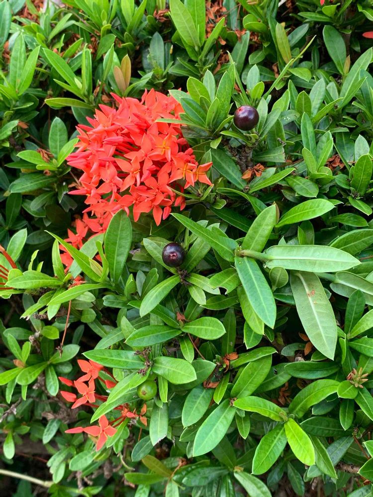 見えますか👀さんたんか(さんだんか)の花の下に熟した実〜南国の秋も直ぐそこに🍂