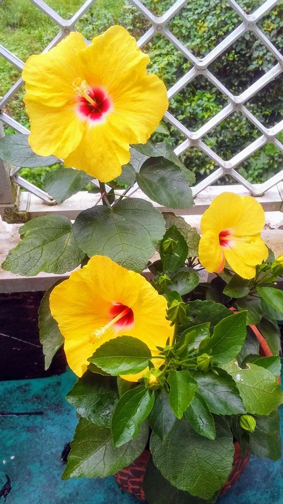 剪定ね☝️ハイビスカスと認識する前に伸びたから勝手にひと枝チョッキンしちゃった🤣でも、今日も一つ咲いて他にも蕾がいくつかついています。