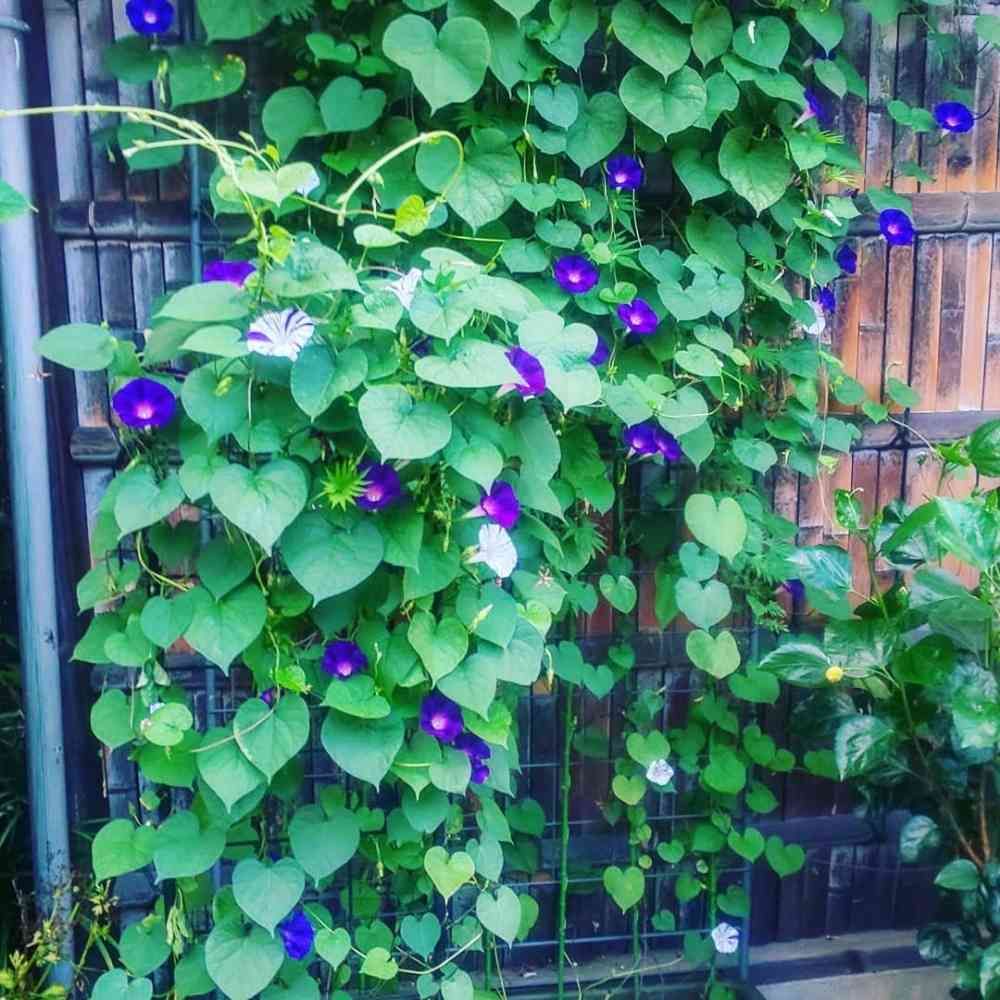 今年はゴーヤでなくて変化朝顔の江戸風情のグリーンカーテンにした💕😉
