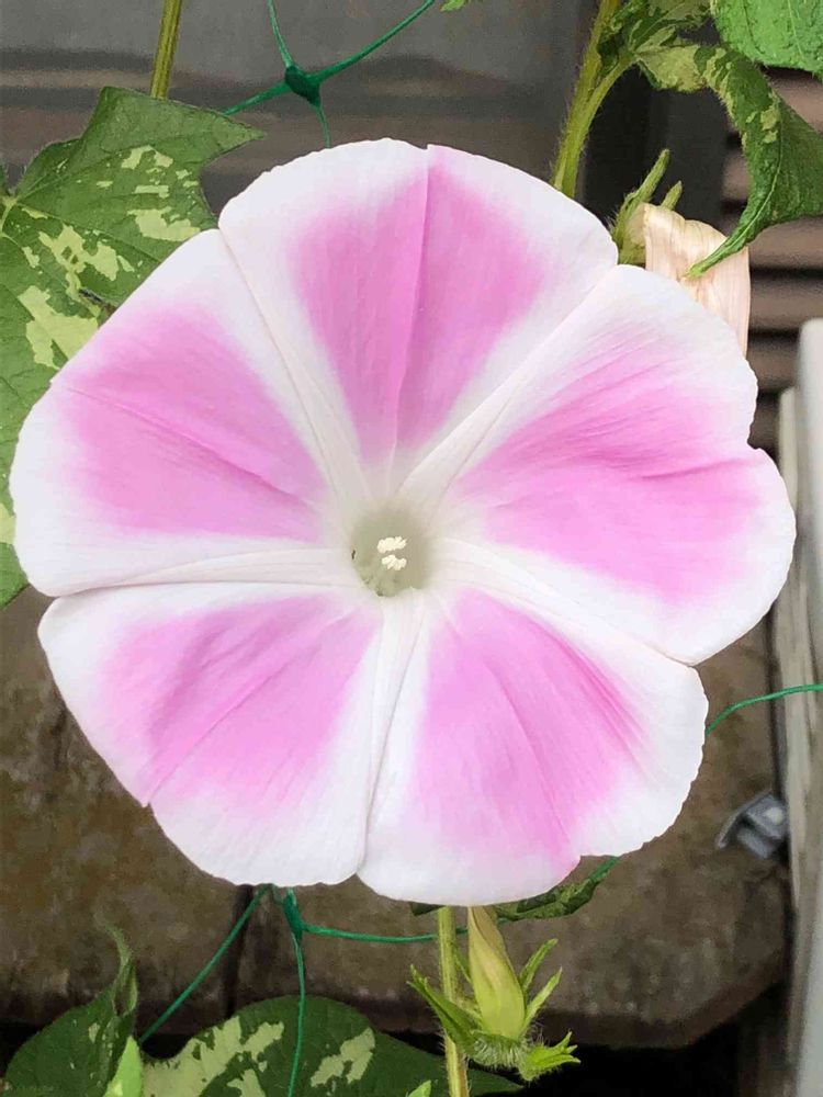 すごく可愛い朝顔にどら焼き結びつけて〜💦(´・_・`)カワイソウ…