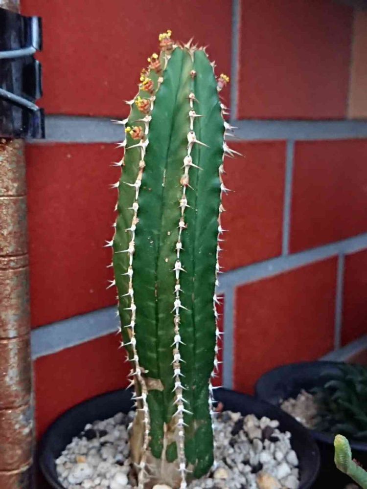 おはようございます~雨降ったようです。バルコニーが、むちゃくちゃ濡れてます!ユーフォルビア 大正キリン 初めて咲かせました!✨