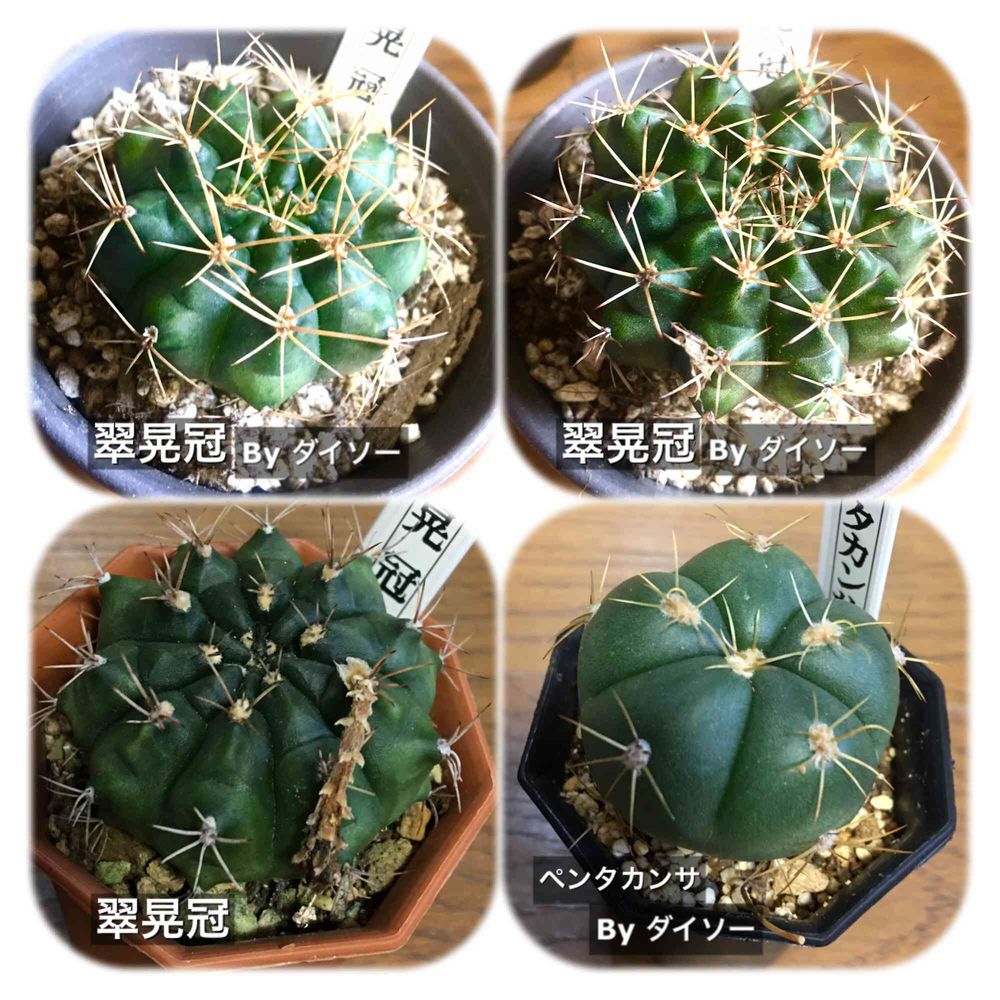 ダイソーサボちゃんが二鉢❗️見た目が似てるので"翠晃冠"としましたが、刺が長い❗️😣