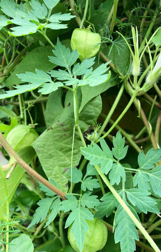 朝顔に埋もれるフウセンカズラ(笑)
