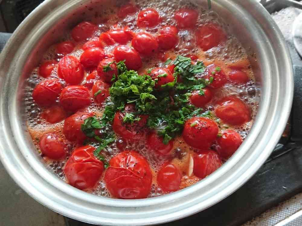 黒胡椒、バジル、ニンニクパセリとお塩をいれて煮詰めます。