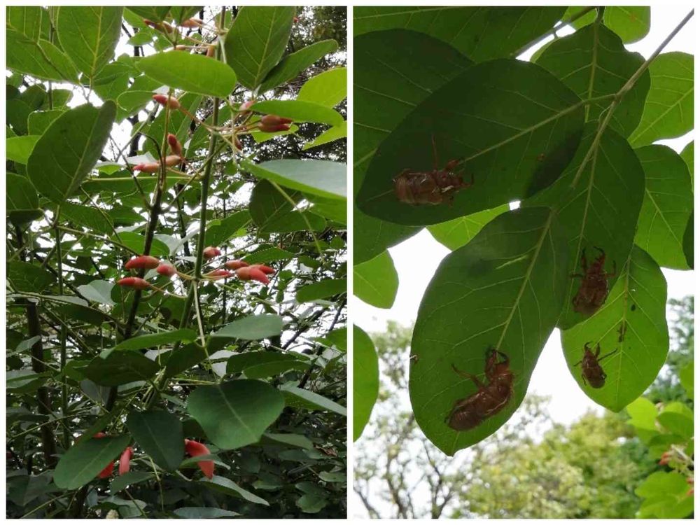 葉っぱの裏には蝉の脱殻がびっしり‥