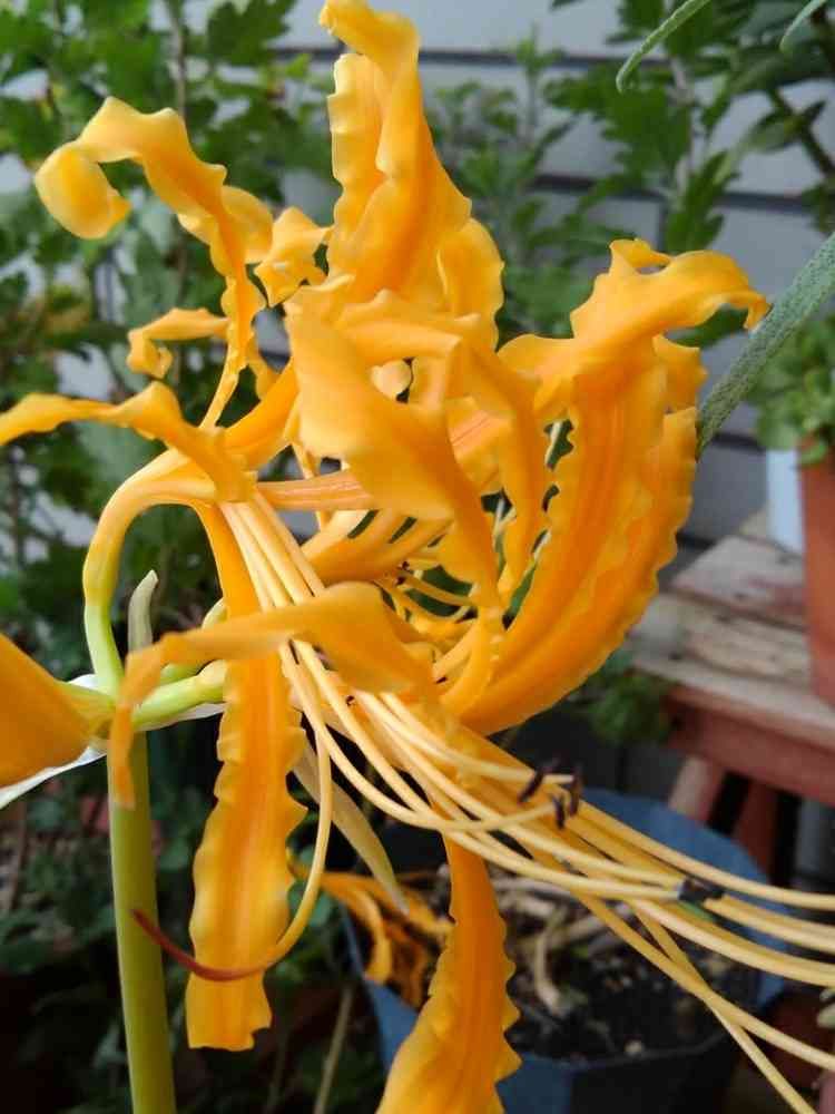 覗いて下さり、コメント有り難うございます。このお花は、近所のお家の玄関に咲いていました。いつもは無かったのに、今日見つけました。鉢植えです。裏庭から出されたのかも知れません。