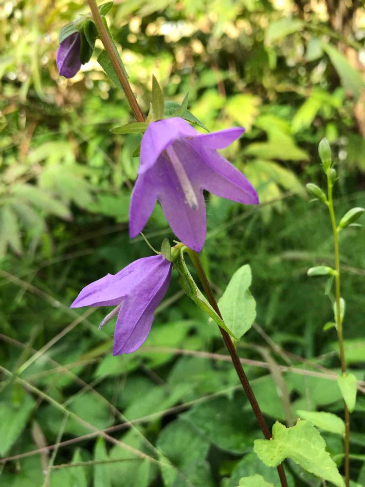 昨日の蕾、咲きました💕こぼれダネからのせいか、背も低いし、花数も少ないけど〜やはり可愛いカンパニュラの仲間❣️