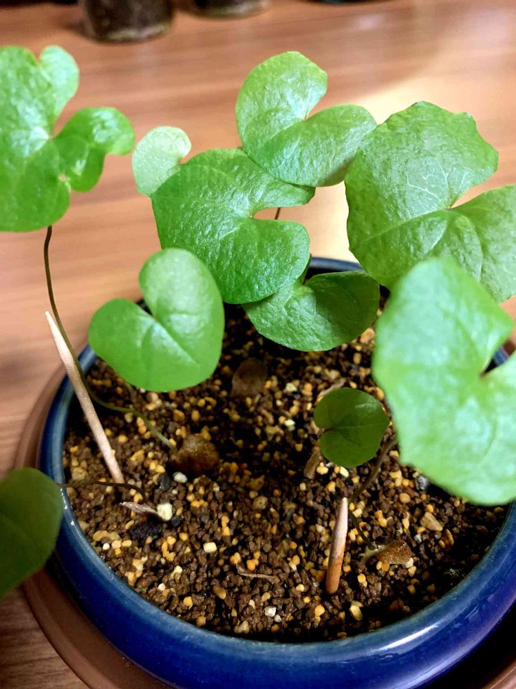 12個の種をぶっ差し…いや、撒いたアフリカ亀甲竜🐢 10個芽が出てハートがわさわさ。今まだ腰水でぬる〜く育ててますが、もうそろそろ止めるべきか、あと2個を待つべきか。うーん🤔