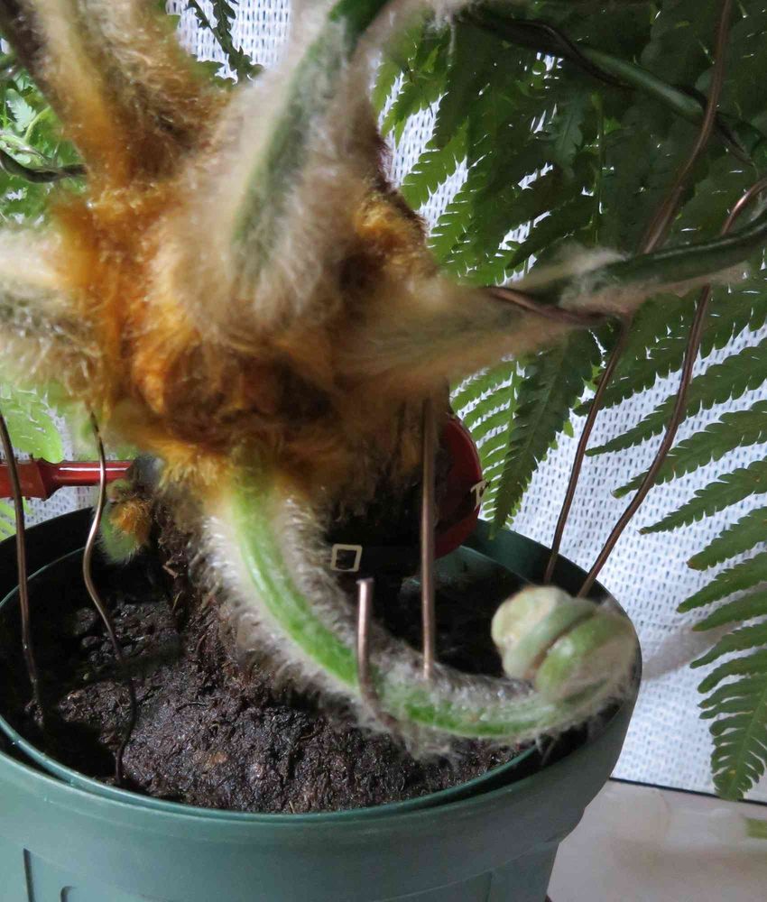 ついに正体を現しました。しっぽです。冬場は自室に取り込むので、後ろに伸びるのは困るんだよね~ といわけで、矯正しました。今度は折らないように気を付けます。