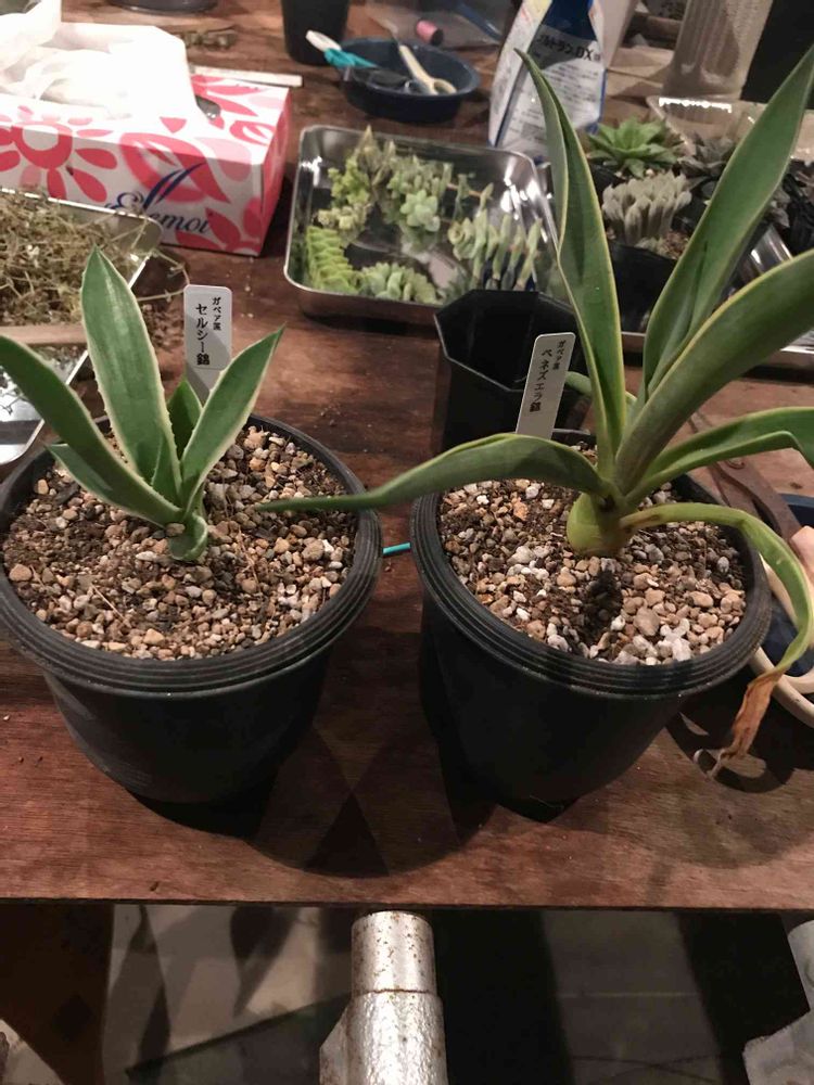 メルカリで頑張って多肉売ったから、ご褒美にアガベのセルシー錦とベネズエラ錦買っちゃった🤤👍