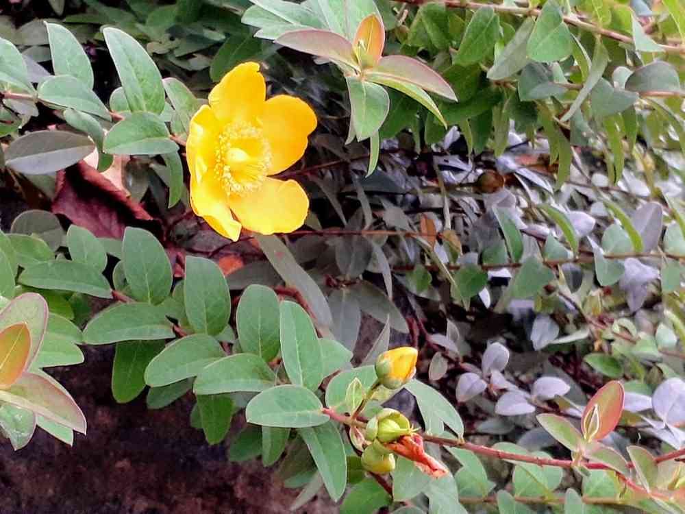 さて、こちらは葉が斜め十字になっているのと、花がしっかり開いているので、タイリンキンシバイ(ヒペリカム ヒドコート )かな?と思いましたがどうでしょう?