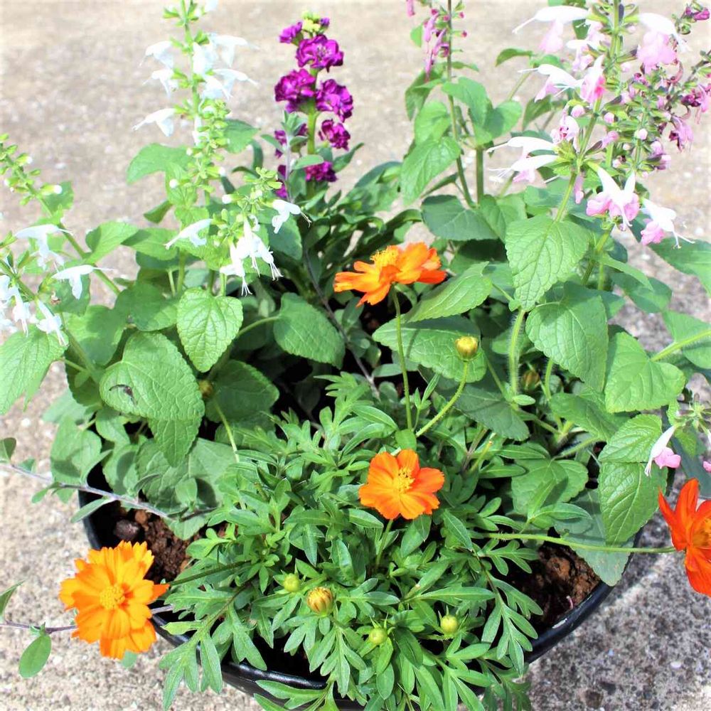 コクシネア、キバナコスモス、ストックの寄せ植え