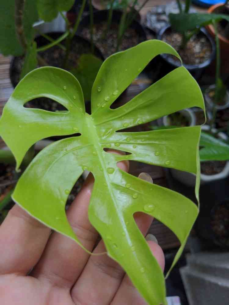 モンステラデリシオーサコンパクタの開いたばかりの新芽ちゃん🌿