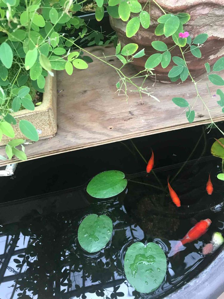 散歩で見つけました👀かわいい金魚と萩?ステキな雰囲気でした🌿