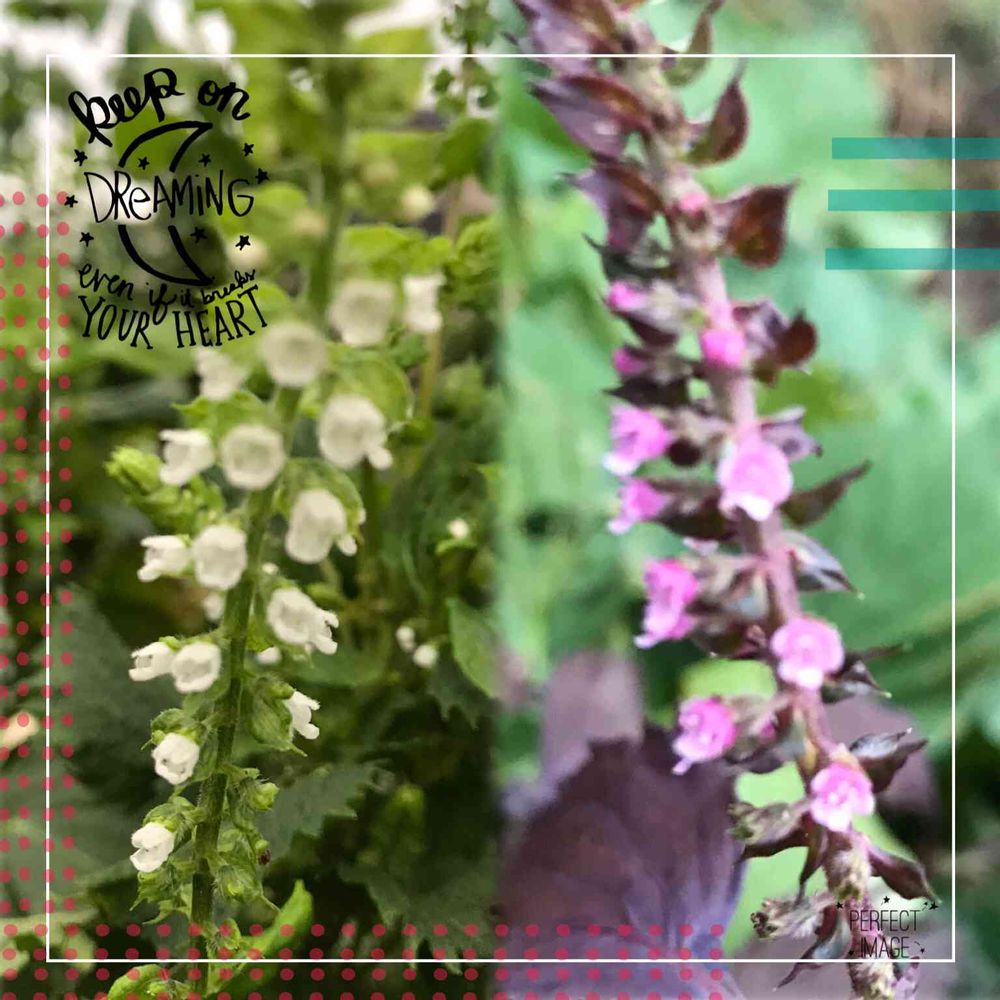 紫蘇の横にはバジルも花が咲いているよ🤍💚