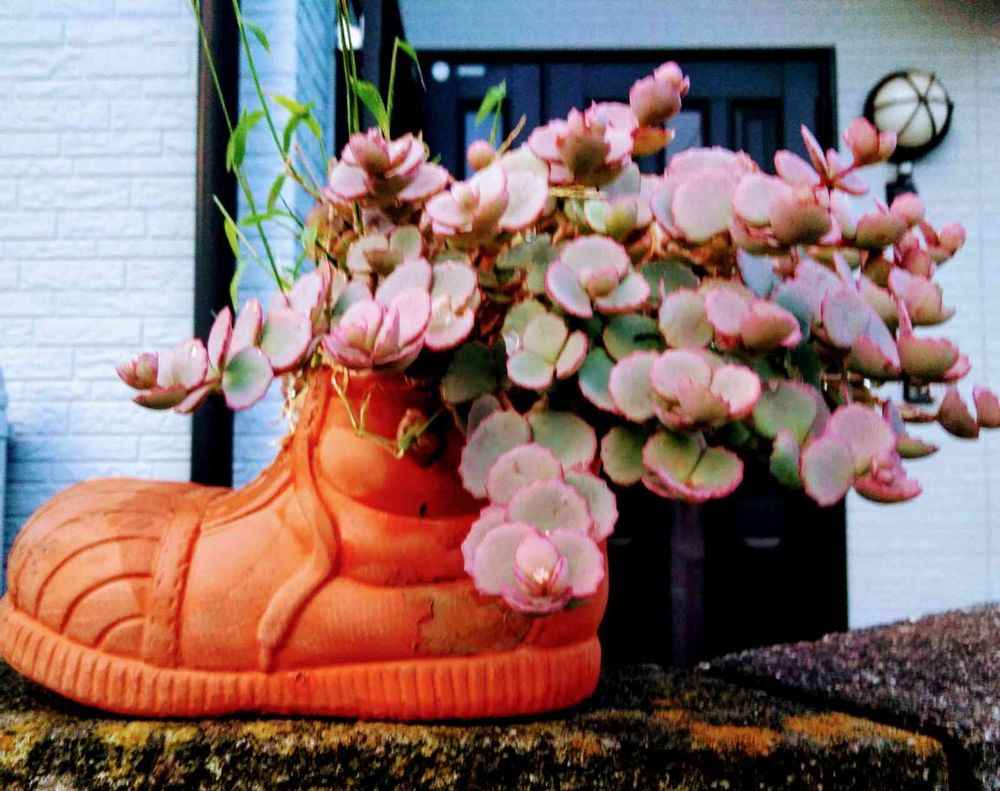 買い物帰りに、通り道のお宅の塀の上の多肉植物、「ミセバヤ」を🤳させて、頂きました。