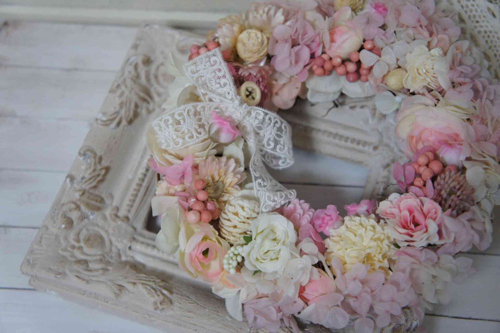 ふんわふわの桃色リース。プリザとアートフラワーMIXで作りました♪( ´θ`)ノminneにてUPさせて頂いてます♡♡