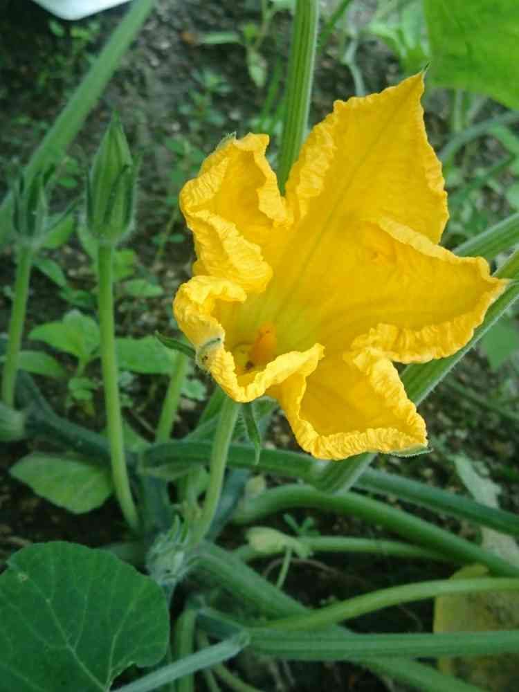 今朝、初めて咲いたたぶんカボチャの花🌼