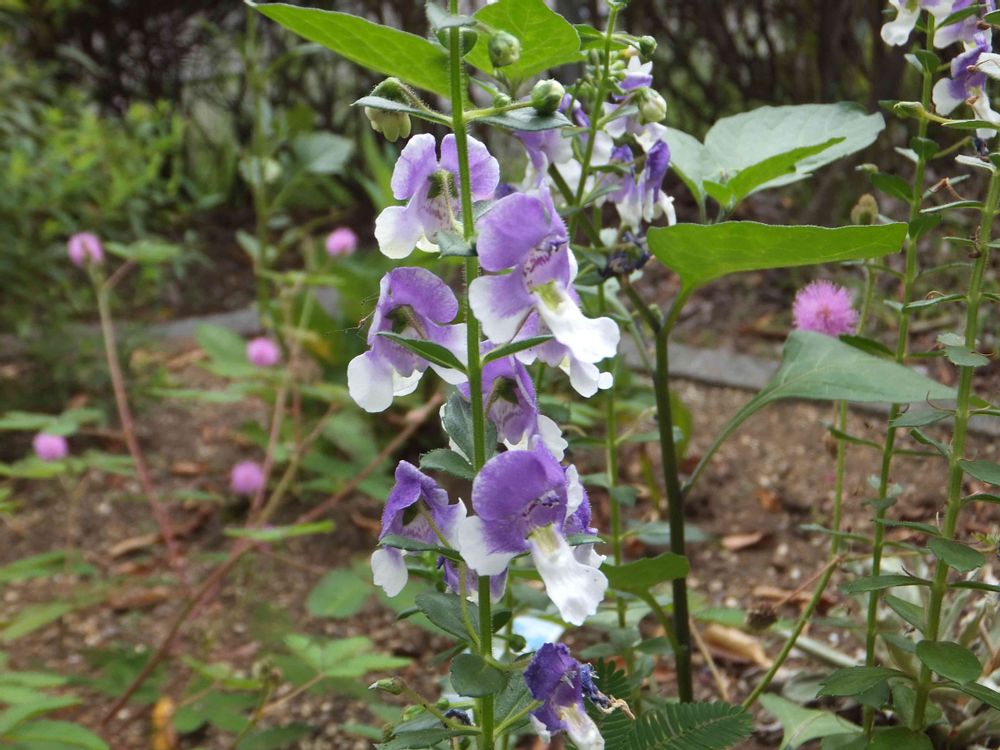 今朝の敷地内お散歩。 アンゲロニア? でもお花が大きい。 何だろう? パチリ