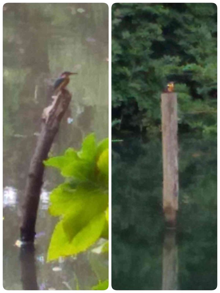 畑で花々を撮影して森林公園を抜けて帰ろうとしたら、池の周りに数台の望遠鏡がセットしてあったので近づいてみると、遠くにいるカワセミをねらって撮影していたのです。私が一度見てみたいと憧れていたカワセミです。望遠鏡で撮ったpicを見せて頂きましたが本当に綺麗な色をしています。