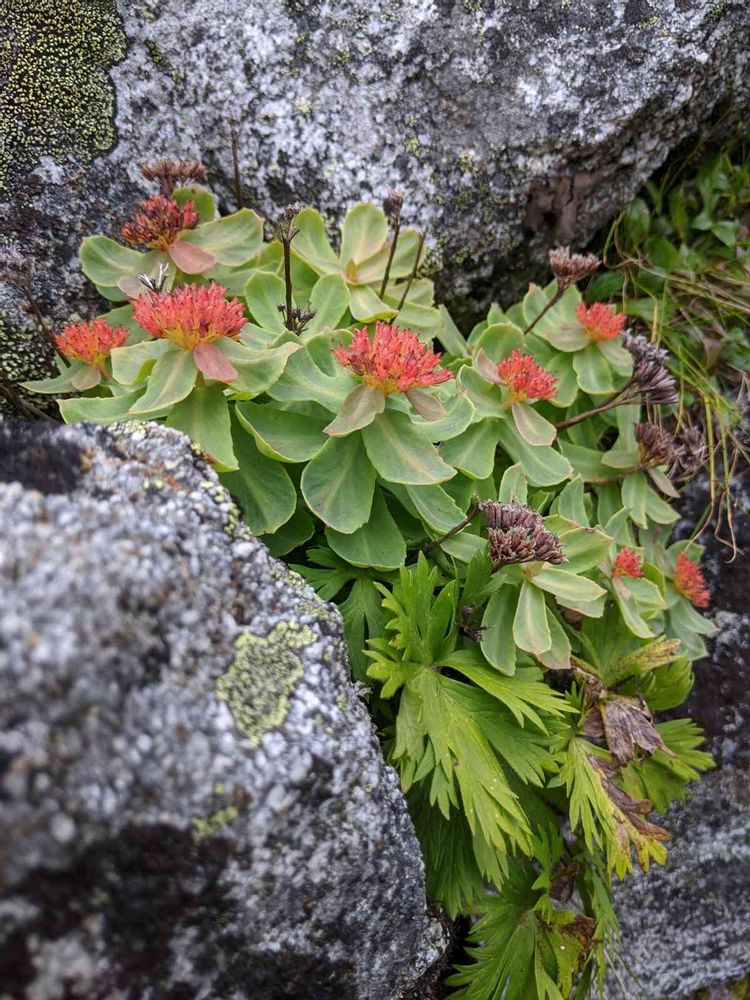 夏に槍ヶ岳で見たものは黄色でしたが、イワベンケイも紅葉するんですね🍁🍁🍁朱色に近い色でした。