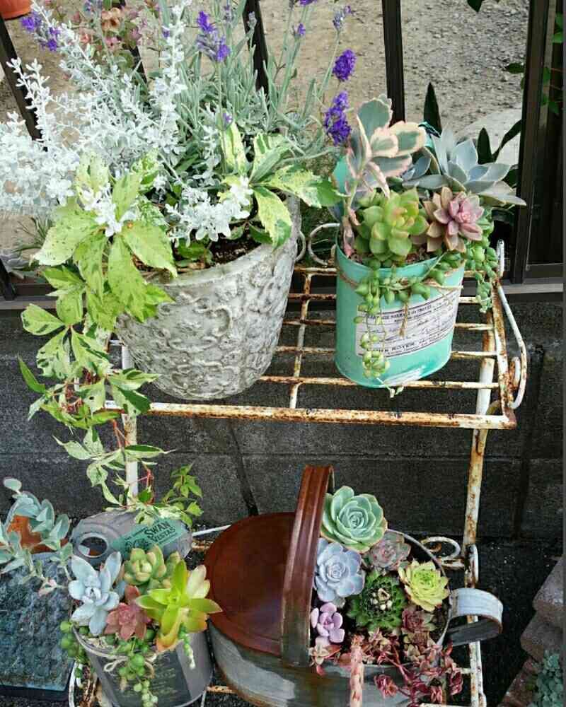 ちゃん🎵雨晒し放置組だよ~😁群れ対策にリメ缶の時は鉢底石をいーっっぱい入れてるよ😂