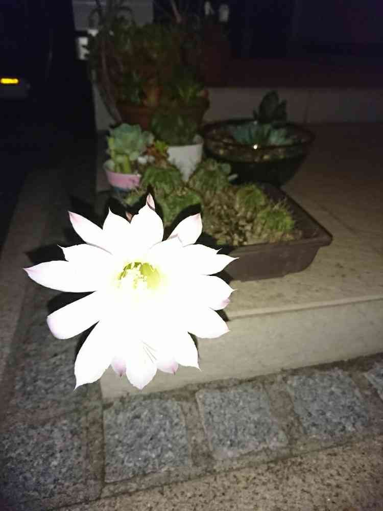 月下美人?孔雀サボテン?家は孔雀サボテン。『月下美人もどき』は赤、白で毎年さいてくれます。綺麗ですねー。