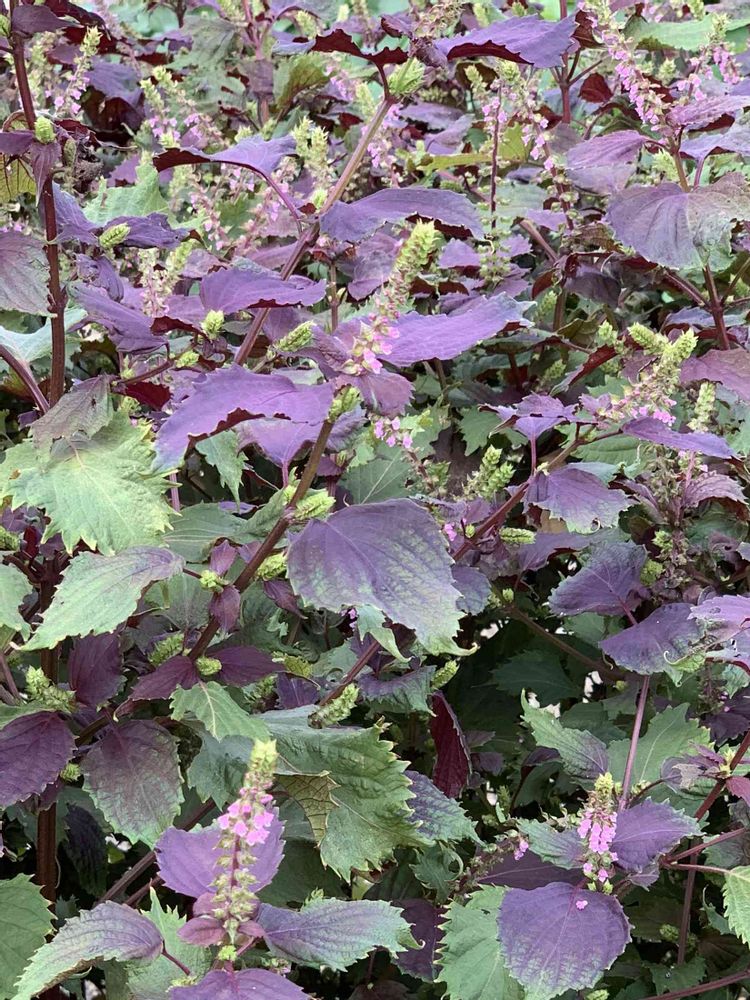 おはようございます。詳しくは、分かりませんかが、畑で、赤紫蘇をそのまま植えておくと、picのような色になります。その前の、赤紫のきれいな葉を梅干しを作る時に使いますね。✨🥀😊