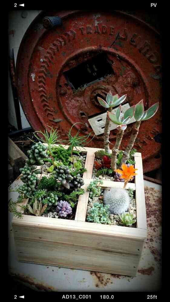 『工場のおじいさんの観察木箱×多肉とセダムとサボテンと、、松の赤ちゃん』