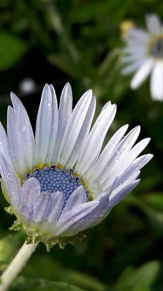 シルバーリーフで花芯のブルーがとても美しい花です。