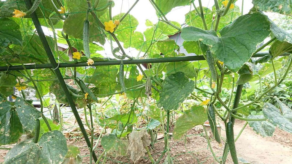 キュウリlove❤️なので気合いが入りますが、支柱は軽乗用車の車内に入る長さの物しか買えず、すでにキュウリのつるの先が30センチほど飛び出しています。夏前まで使っていたキュウリの棚は🎃カボチャが占拠しています😅