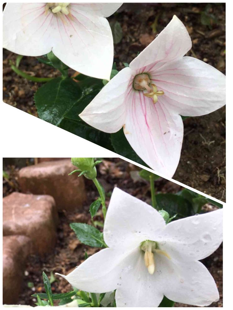 雨上がりの桔梗。ピンクとホワイト♪♪