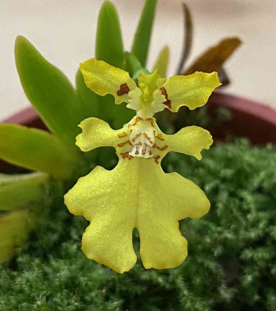横1センチ縦1.5センチぐらいの可憐な原生蘭です。苔と共に育てるの難しい。。
