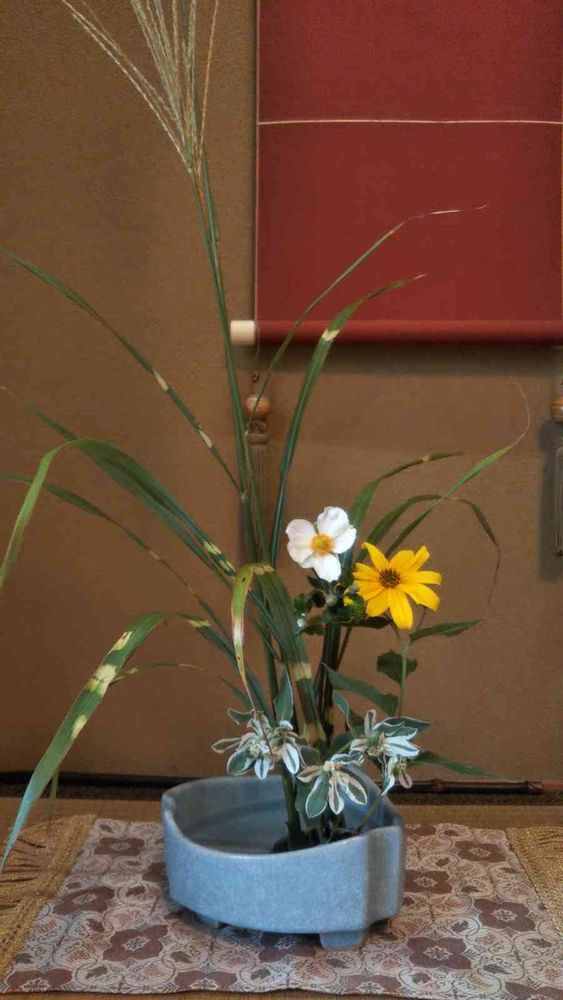 ヤバネススキ、秋明菊、菊芋、初雪草。