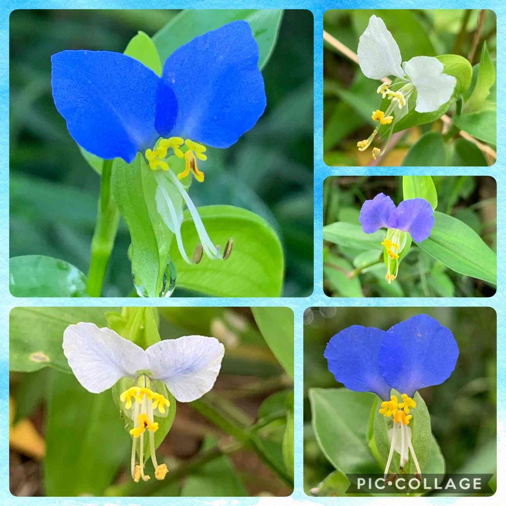 シロバナツユクサが見たいと願っていたら、少し青い斑入りのツユクサに出会いました💕