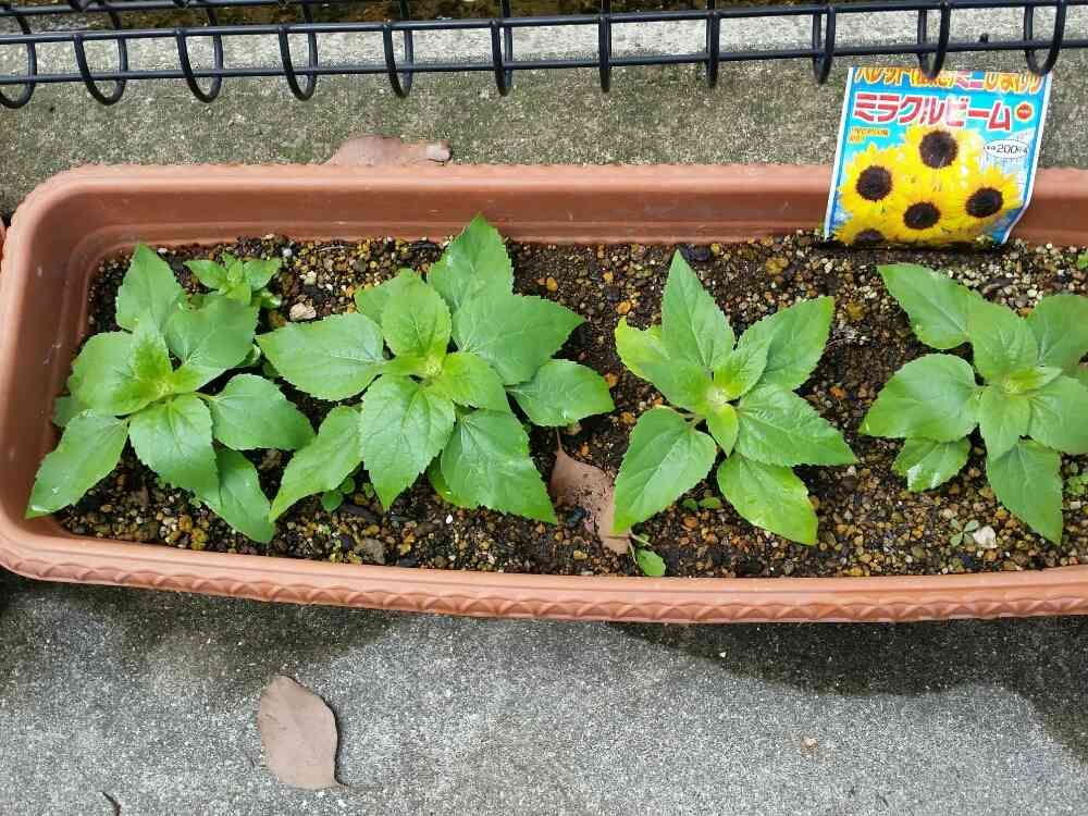 8月に咲かせたいから、遅く蒔いた向日葵の種。